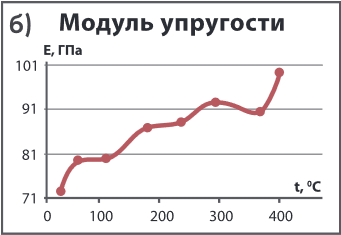 В качестве примера экспериментальной зависимости механических свойств материала от температуры на рисунке а,б представлены графики зависимостей твердости и модуля упругости от температуры для полиметилметакрилата (ПММА) при нагреве до 140 0С.
