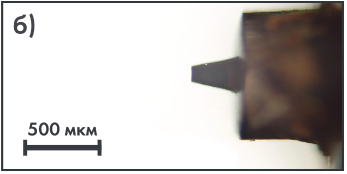 Характерный диаметр объектов может составлять от единиц до сотен микрометров. Точные геометрические характеристики объекта определяются по изображению оптического микроскопа. В качестве индентора применяется алмазный плоский штамп с заданным рабочим диаметром.
