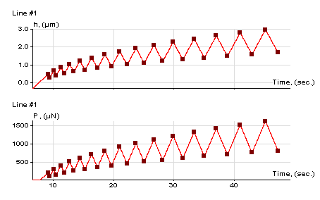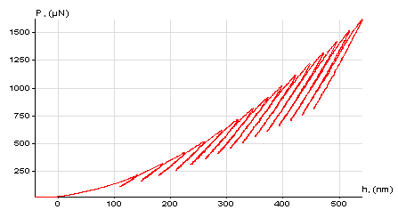 «НаноСкан» реализован метод многоциклового нагружения с частичной разгрузкой (partial unload technique), позволяющий измерить механические свойства на разных глубинах за одно вдавливание индентора в поверхность образца.